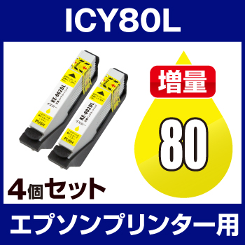 エプソンプリンター用 ICY80L イエロー 4個セット 互換インクカートリッジ ICチップ有(