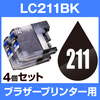 ブラザー LC211BK ブラック 4個セット 互換インクカートリッジ ICチップ有 brother