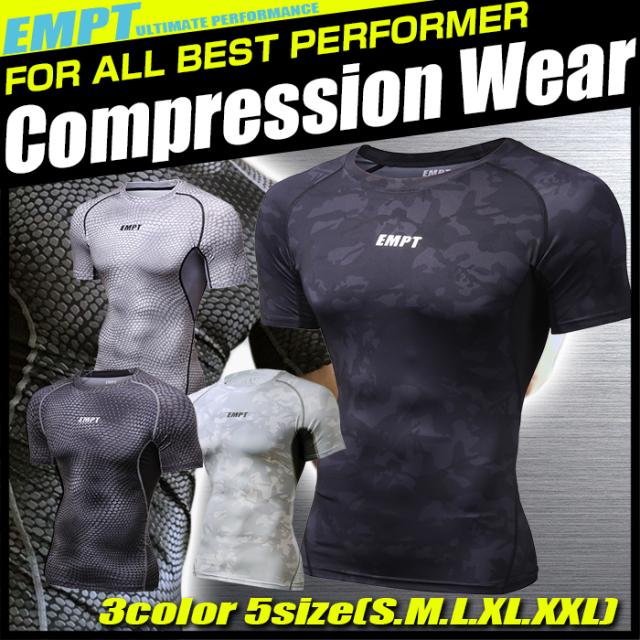EMPT メンズ コンプレッションウェア パイソン カモフラ コンプレッションウェア スポーツウェア 夏用 夏 半袖 Tシャツ おしゃれ 大きいサイズ 小さいサイズ ジム スポーツ 筋トレ トレーニング ゴルフ サッカー テニス