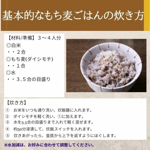 - 白米に混ぜています。 もちもちして美味しいです。 麦にも多くの種類があるのですね。 白米だけより、美味しいです。