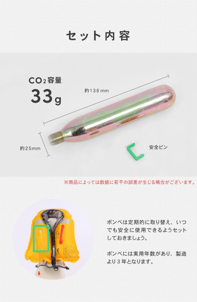 DABADA(ダバダ) 【メール便】ライフジャケット 交換ボンベキット33g【ベストタイプ/手動膨張式】専用 救命胴衣 フリーサイズ 送料無料