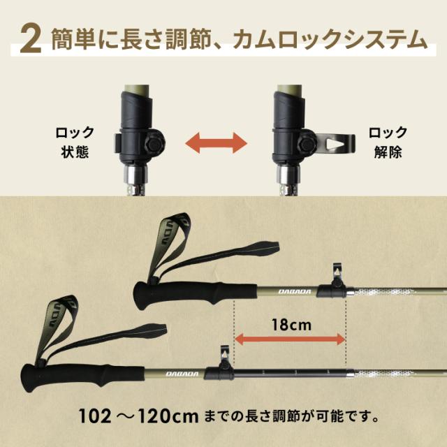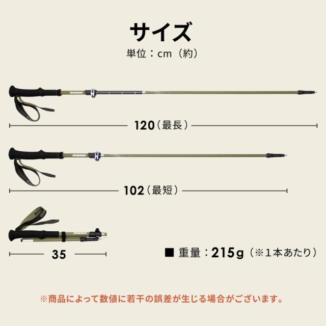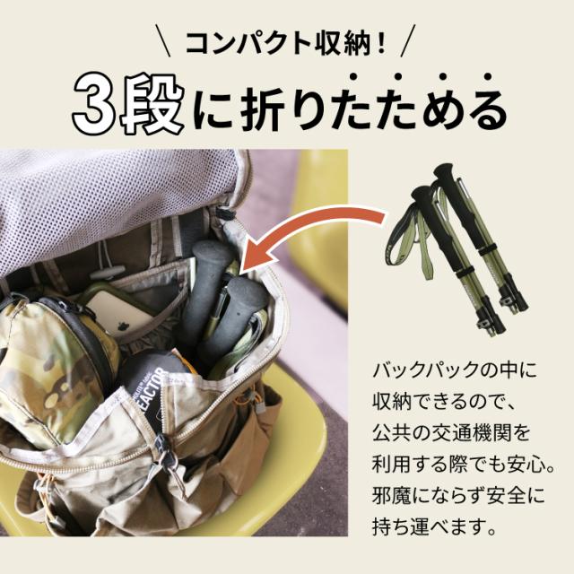 3段折りたたみ式 トレッキングポール アルミ カーボン 軽量215g/最少35cm 2本セット 長さ調整可能 登山杖 登山用品