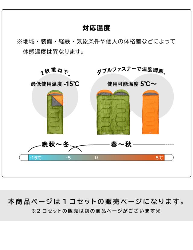 適応温度:-5℃〜0℃〜5℃(※快適温度5℃ 2枚重ねで-15℃まで対応)