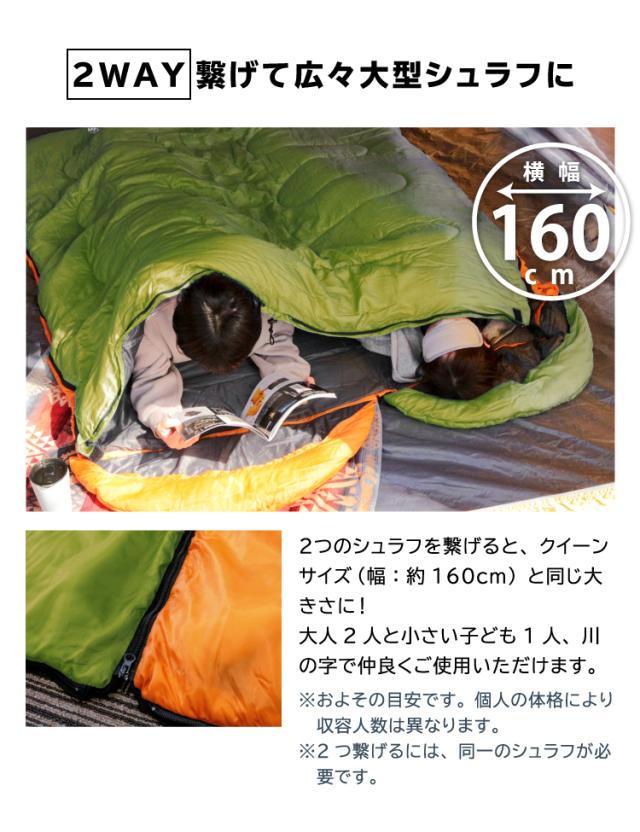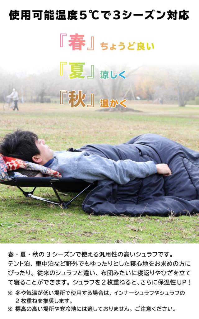 ※ご使用の地域により対応条件が異なります。冬はインナーシュラフや2枚重ねを推奨。