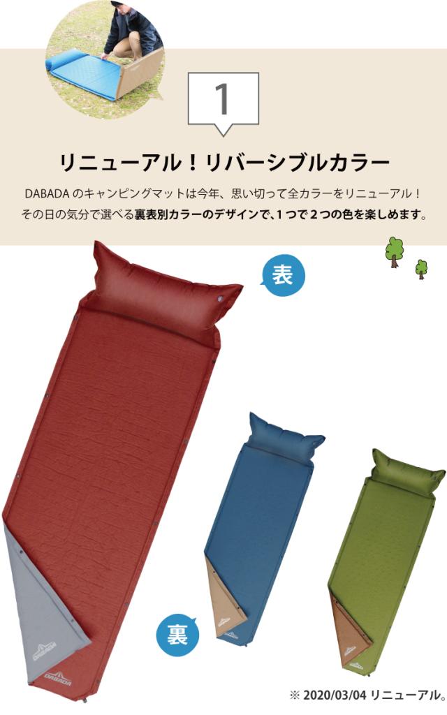 DABADA(ダバダ) お買い得2個セット キャンピングマット リバーシブル エアーマット 車中泊 キャンプマット エアピロー付 自動膨張式 防災グッズ 送料無料
