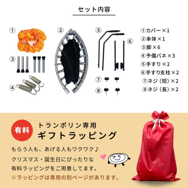 トランポリン 手すり付き 102cm 耐荷重150kg 交換バネ3本おまけ付き ハンドル付き 全28色 お得なセット販売 組立簡単 プレゼント