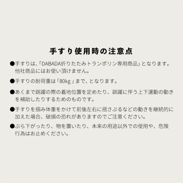 ・手すりは、あくまで跳躍を補助するものであり、ぶら下がったり、物を置いたり、