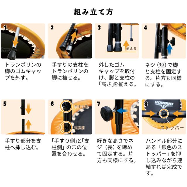 使用しない時はコンパクトに折りたためる室内用トランポリンが、お得な手すりとセットで登場☆