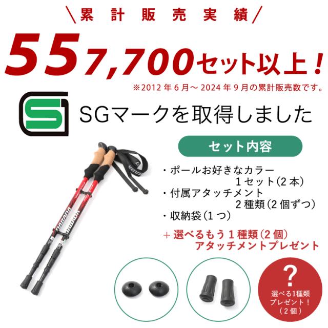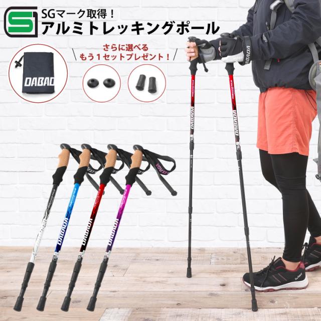 【SGマーク取得】トレッキングポール アルミ製 収納袋付き 軽量220g/最少56.5cm 2本セット 登山杖 登山用品 選べるラバーキャップ付き トレッキングステッキ 杖 ストック ノルディックウォーキング 登山 クリスマス_kp