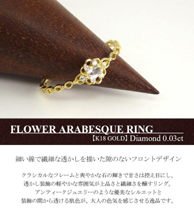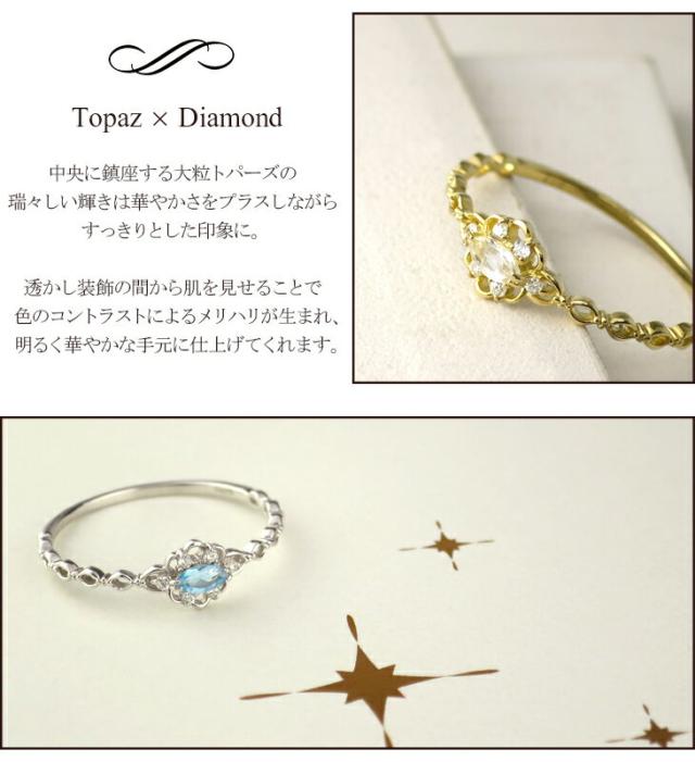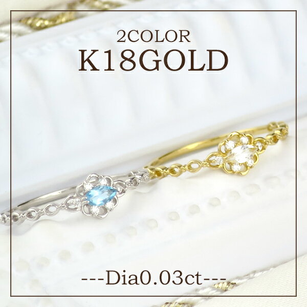 K18 選べる2カラー アラベスク 唐草フラワー トパーズ ダイヤモンド リング(5号〜13号) 11月 誕生石 天然石 指輪
