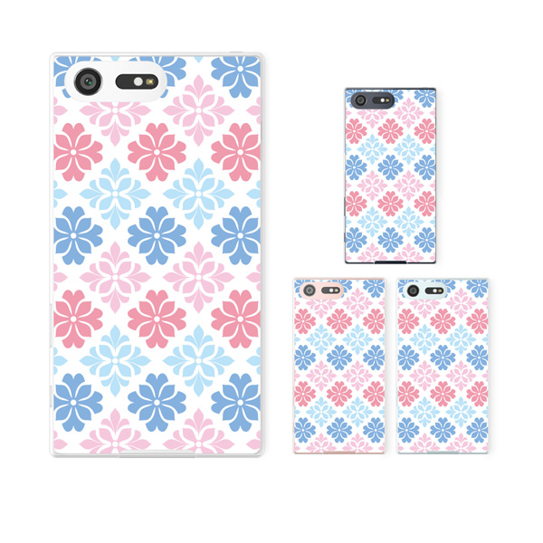 docomo Xperia X Compact SO-02J (純正卓上充電対応) スマホ ケース ハード カバー パターン22 花 ピンク/水色