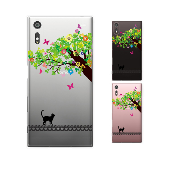 Xperia XZ (docomo SO-01J / au SOV34 / SoftBank 601SO) (純正卓上充電対応) ケース ハード カバー ネコと樹木の精