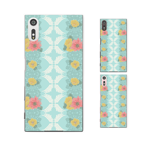 Xperia XZ (docomo SO-01J / au SOV34 / SoftBank 601SO) (純正卓上充電対応) ケース ハード カバー 花柄34 羽 水色