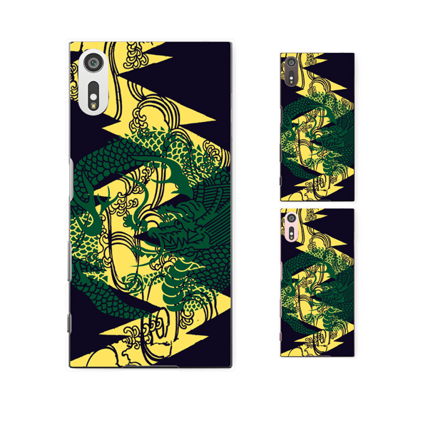 Xperia XZ (docomo SO-01J / au SOV34 / SoftBank 601SO) (純正卓上充電対応) ケース ハード カバー 和柄 龍 黒 黄色 緑