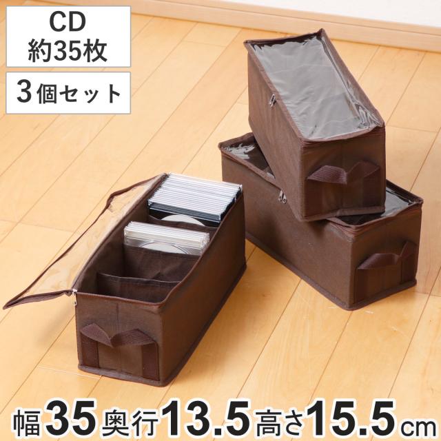 収納ボックス CDサイズ 幅35×奥行13.5×高さ15.5cm メディア収納 布製 3個セット ( 収納ケース 収納 CD収納 ゲームソフト収納 仕切り 底板 透明窓付き 保管 布 不織布 ファブリック ゲームソフト CD 3DS DS PS ソフト )