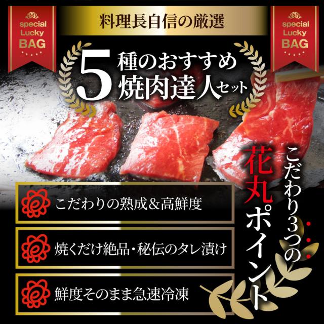 焼肉達人セット 福袋 5種盛り 食べ比べ 焼くだけ 食べ比べ セット 焼肉 惣菜 お取り寄せ ふくぶくろ バーベキュー BBQ 肉 美味しい 冷凍 送料無料 キャンプ キャンプ飯 *当日発送対象 お肉の しゃぶまる