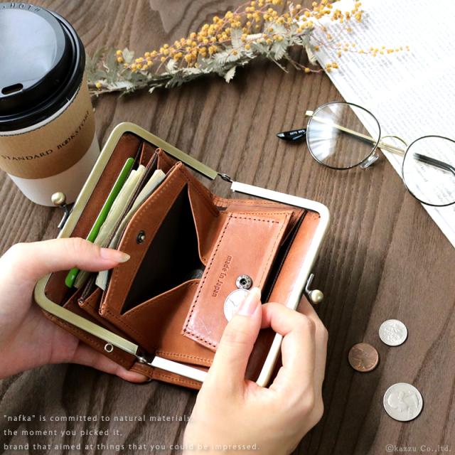 折り財布 レディース がま口 短財布 本革 がま口財布 財布 ギャルソン薄い ナチュラル 折財布 nafka ナフカ【NFK-72002】 ブランド 人気