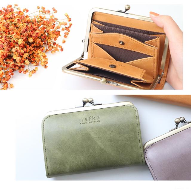 折り財布 レディース がま口 短財布 本革 がま口財布 財布 ギャルソン薄い ナチュラル 折財布 nafka ナフカ【NFK-72002】 ブランド 人気
