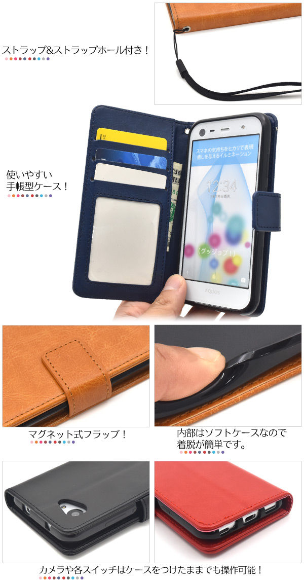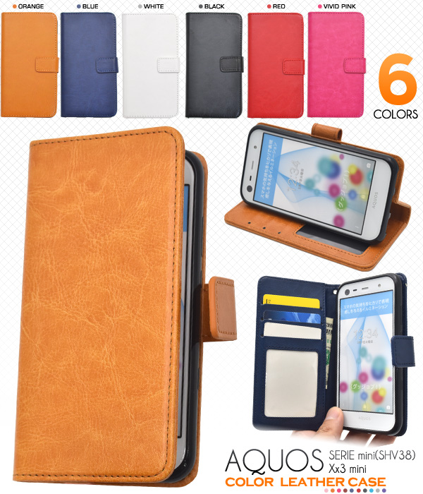 AQUOS SERIE mini SHV38 au AQUOS Xx3 mini SoftBank 用 手帳型 カラーレザーケースポーチ 手帳型 保護カバー きれい かわいい