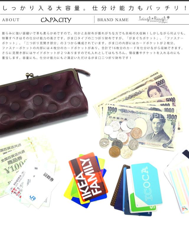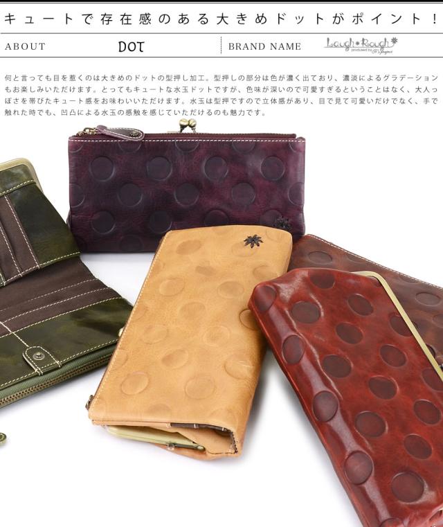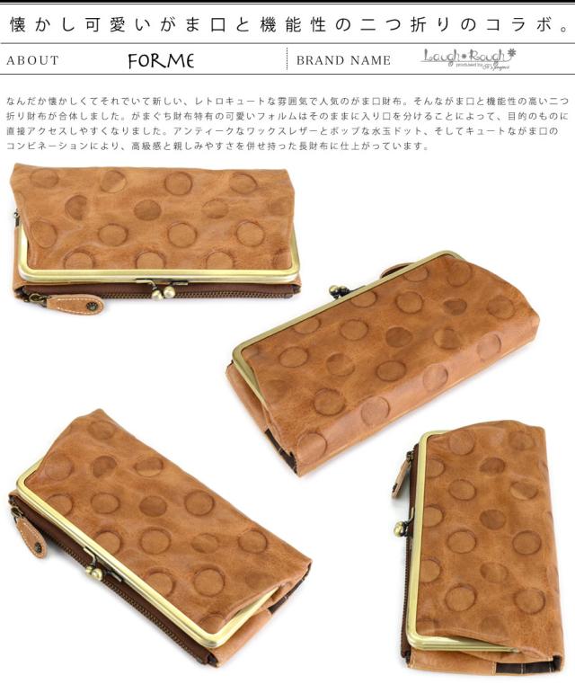 名称:Laugh Rough ドット型押しオイルレザー がまぐち二つ折り長財布/ロングウォレット
