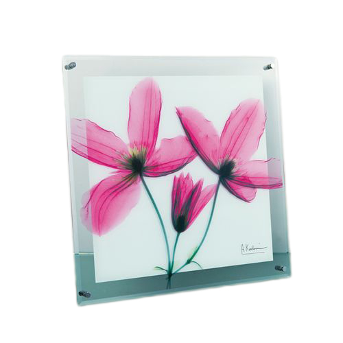 クリアなガラスのプレートに、透明感のあるレントゲンモチーフをカラフルにプリントしたモダンガラスアートです。