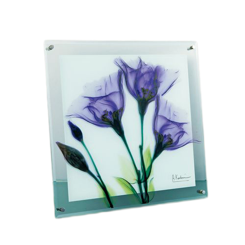 クリアなガラスのプレートに、透明感のあるレントゲンモチーフをカラフルにプリントしたモダンガラスアートです。