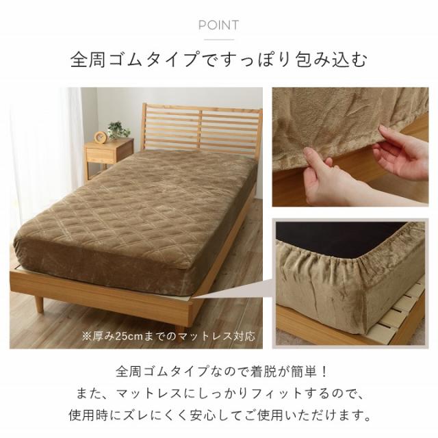 | ■優しい肌触りのフランネル調の生地。軽くて滑らかな素材を使用。適度に光沢があり高級感も感じられます。 ■布団に入る際のヒヤッとを軽減。 ■敷きパッドとボックスシーツの良いとこどり。取り付けかんたん。ズレにくい。見た目スッキリ。 ■全周ゴムタイプなので着脱簡単。マットレスにしっかりフィットするので使用時にずれにくく安心してご使用いただけます。(マットレス厚み25?pまで対応) ■汚れやすい表面には表地とポリエステルわたと裏生地をキルティングしマットレスに対しての汚れを軽減してくれます。 ■ご使用時、お洗濯時の |