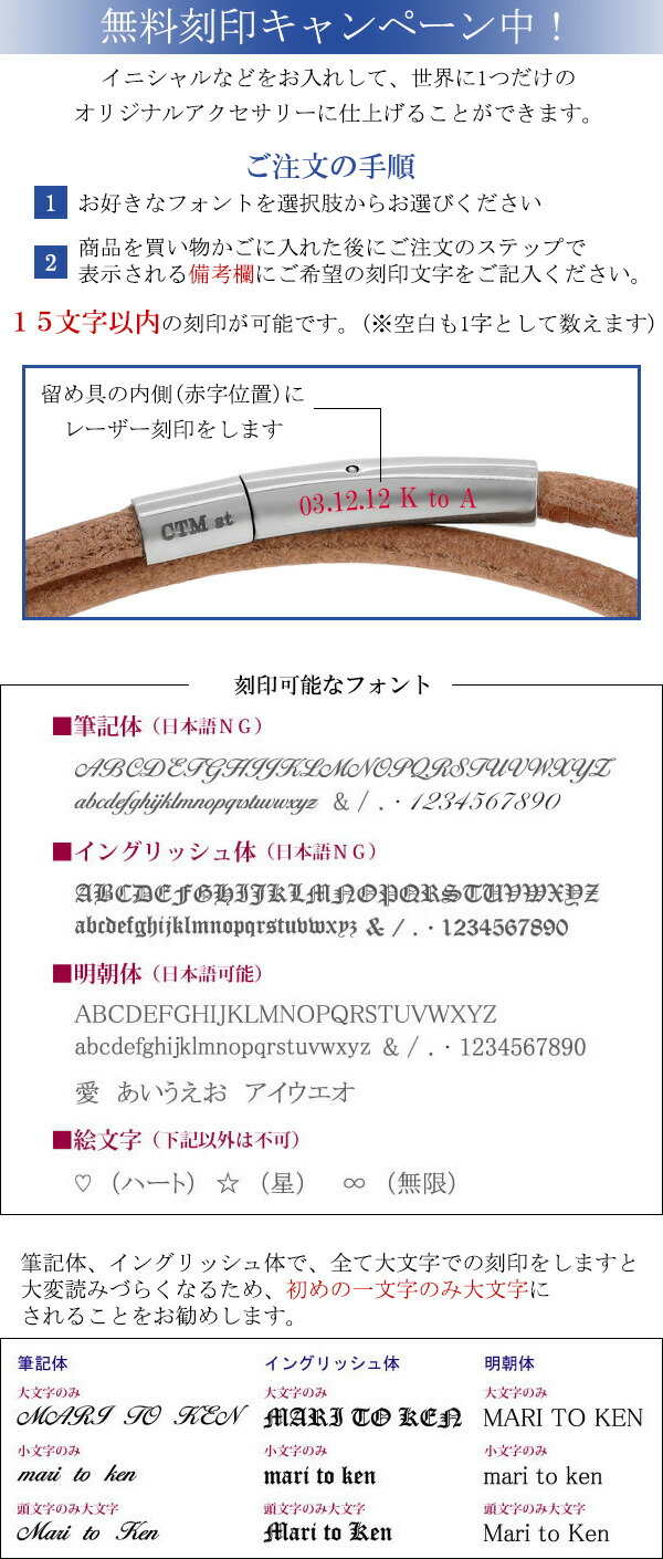 ※ご希望の刻 印文字は商品をお買い物かごに入れた後、ご注文ステップ時の備考欄に、メンズ・レディースそれぞれご記入下さい。