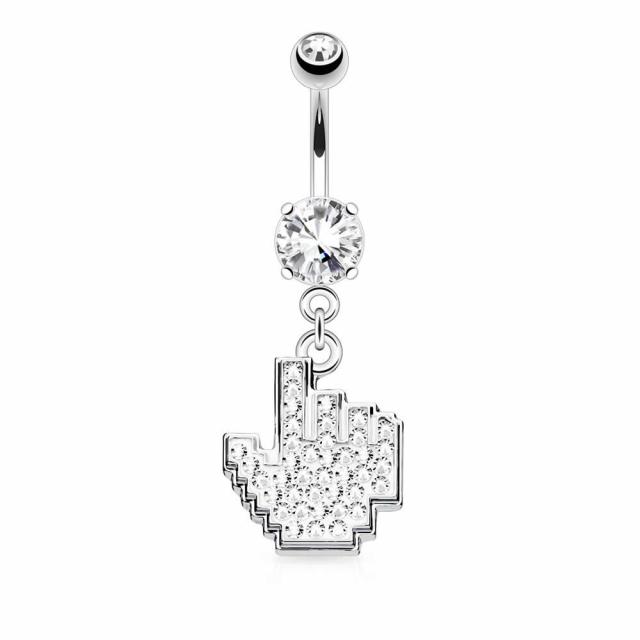 おもしろポチる へそピアス 14G 14ゲージ 14Ga ヘソピアス 臍ピアス メンズ レディース へそぴあす ボディピアス サージカルステンレス316L 揺れる チャーム ラインストーン クリスタル ジルコニア ネイブル 面白い 指 手 ハンド いいね クリック マウスポイント オモシロ