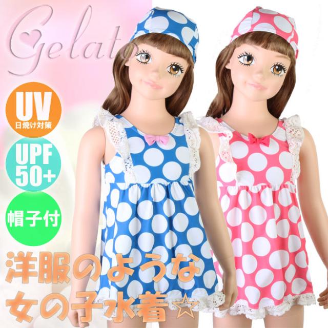 (パケット便送料無料)gelato toddler 女児・大ドット ワンピース 帽子付き(キッズ/子供水着)2833