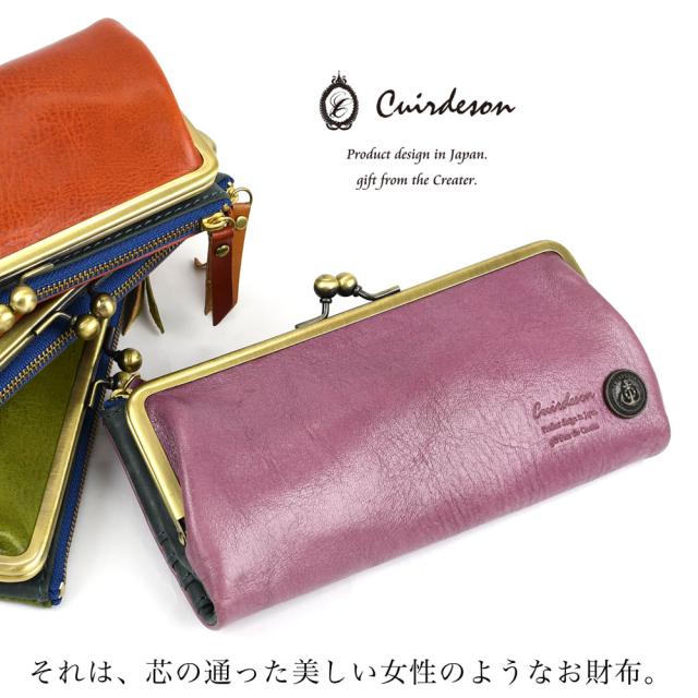 がま口財布 長財布 二つ折り Cuirdeson イタリアンレザー マリン イカリ 本革 財布 レディース キュイールデソン Marinedeson マリンデソン がま口 がまぐち 口金 小銭入れ スマホ 入る ポケット 小物入れ ポーチ 本革財布 グリーン/緑/パープル/紫 送料無料