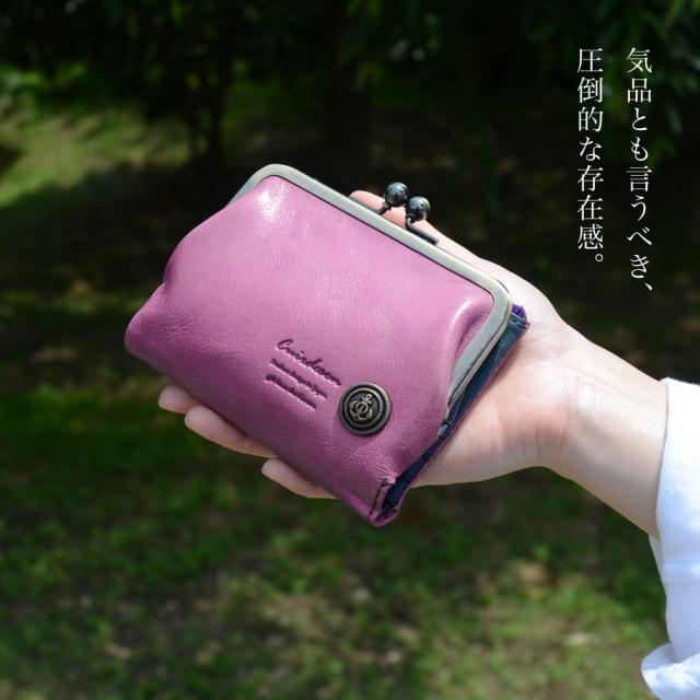 正面から見るとがま口ですが、二つ折りの本体には機能的な収納スペースを備えています。携帯性に優れたコンパクトサイズは、手軽でカジュアルな雰囲気のあるフォルムです。キュイールデソンの優れたデザイン性を象徴する、アンティーク調のゴールドボタンとイタリアンレザーの上品な光沢が高級感を演出。滑らかな手触りとともに、素材の良さがしっかりと伝わるシンプルなつくりになっています。どのカラーもシックにまとめられているので、大人の女性にぴったりのファッション性の高い仕上がりです。