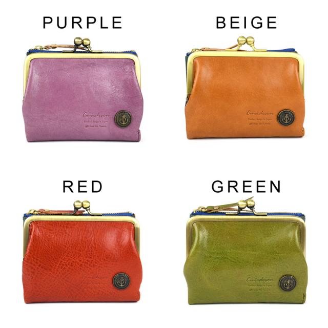 がま口財布 二つ折り財布 コンパクト Cuirdeson イタリアンレザー マリン イカリ 本革 財布 レディース キュイールデソン Marinedeson マリンデソン 二つ折り がま口 がまぐち 口金 小銭入れ カードも入る カード入れ 小物入れ 本革財布 グリーン/緑/パープル/紫 送料無料