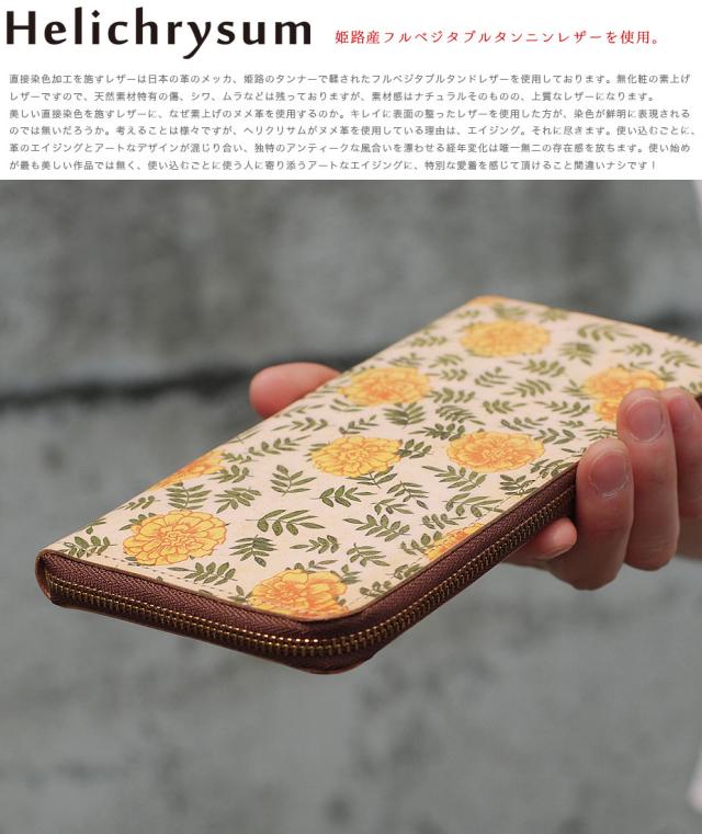 長財布 L字ファスナー 花柄 ヌメ革 姫路レザー 本革 フルレザー 日本製 Helichrysum ヘリクリサム(マリーゴールド、フラワー、ダリア)