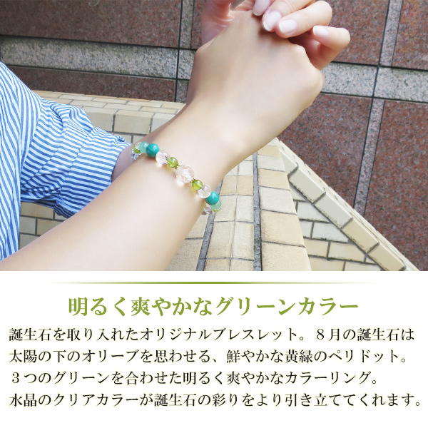 誕生石 8月 ペリドット ブレスレット レディース 天然石 パワーストーン 数珠ブレスレット