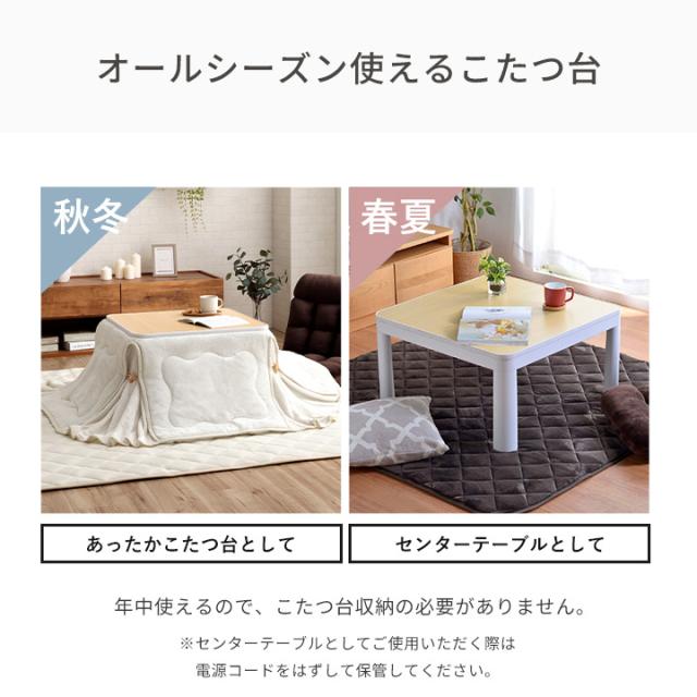 | ■ 大人気のフランシリーズの省スペースこたつ2点セットです!! ■ 側地には柔らかく、肌触りの良いフランネル生地を使用してます。毛足が短いのでゴミや埃が絡みにくいという特長もあります。 ■ こたつ台は、気分によって使い分けるリバーシブル天板。 自然な木目調とシンプルな石目調のデザインです。 ■ 中間電源スイッチやコードフック等、あると便利な機能付き。 ※ こたつ敷き布団は別売りです。 ※ カラーによって、キルティングのデザインが異なります。 ※ 付属の取り扱い説明書を必ずお読みの上ご使用ください。 ※ こちらの電化製品につきまして、商品の特性上ご注文後の返品・交換はお受け致しかねます。あらかじめご了承ください。 ※ この製品は海外ではご使用になれません。変圧器をご使用いただいた場合でもご使用になれません。 ※ 本商品の天板は、生産時期の関係によりエッジ部分の形状が2タイプございます。お届けのタイプはお選びいただくことができません。あらかじめご了承ください。 ※ 掲載写真は表記サイズと異なる場合がございます。 ※ こたつ布団は生産時期により、同色の場合でも若干の色の差が生じることがございます。あらかじめご了承ください。 ※ 画面上のカラーはご使用ブラウザやモニターの設定により、実物とは若干異なる場合がございます。あらかじめご了承の上、ご注文をお願いいたします。 |