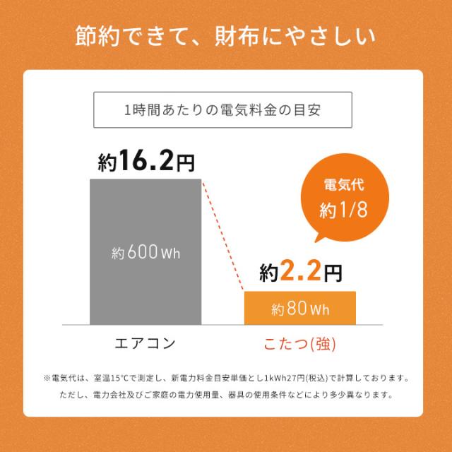 - まずは早々にご配達頂き、有り難うございました。 ずっとホットカーペットを利用しており、さして不便も感じていなかったのですが、今年は例年に比べて寒さが厳しいせいか、一人用のこたつをと思い購入しました...