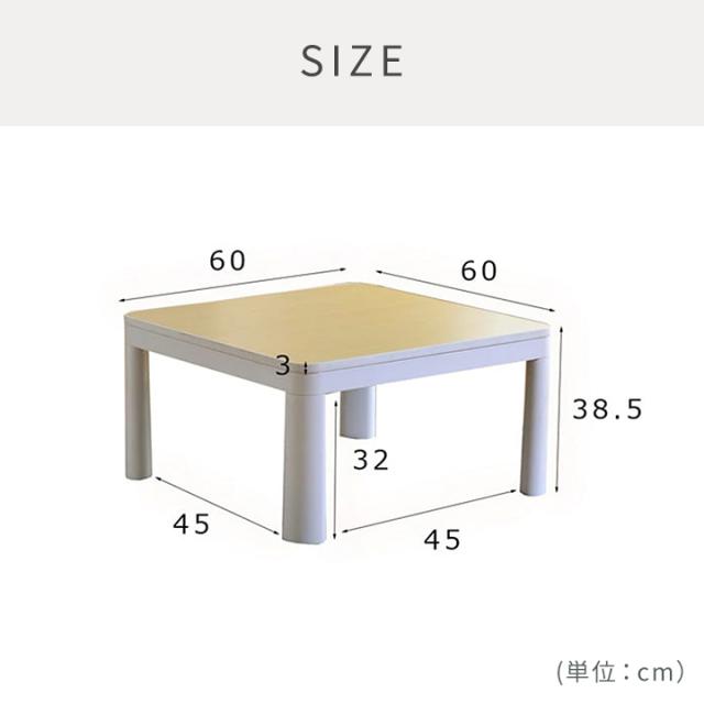 | 掛布団:約160×160cm (キルティング加工許容範囲 +5%−3%) こたつ台:約60×60×38.5cm |