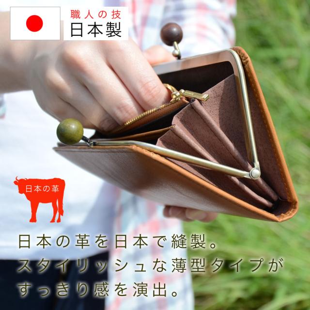 がま口財布 長財布 コンパクト 丸木玉 薄い ワックス オイルレザー 本革 日本製 レディース oeillet ウイエ Nova