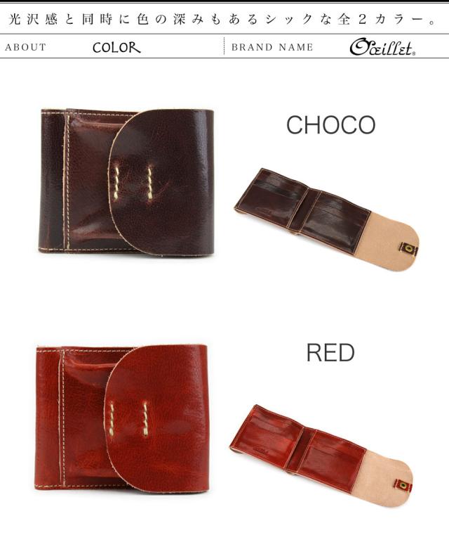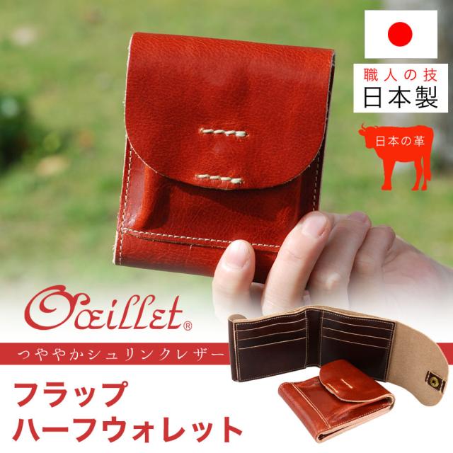 二つ折り財布 かぶせ コンパクト オイル シュリンクレザー 本革 日本製 レディース oeillet ウイエ Rafale