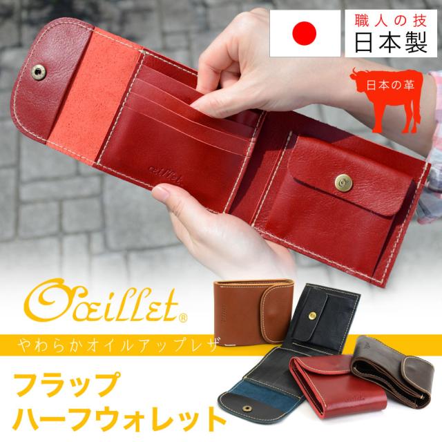 二つ折り財布 かぶせ コンパクト オイルレザー 本革 日本製 レディース oeillet ウイエ Soleil
