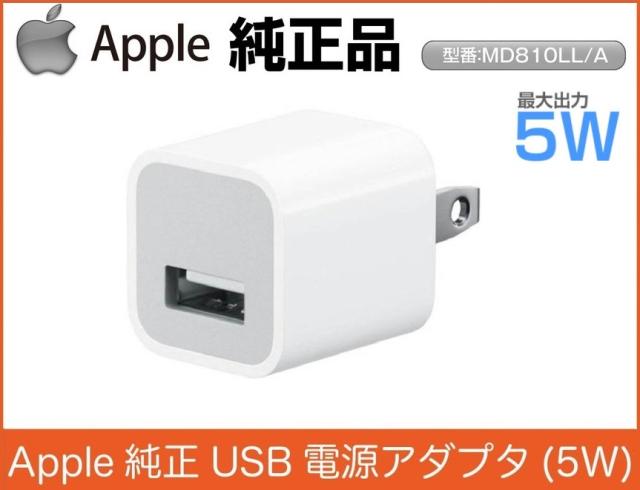 Apple充電ACアダプタ USB充電器 Apple USB Power アダプタ 家庭用コンセント 5W高出力 iPhone/iPod対応充電器 MD810LL/A パルク品