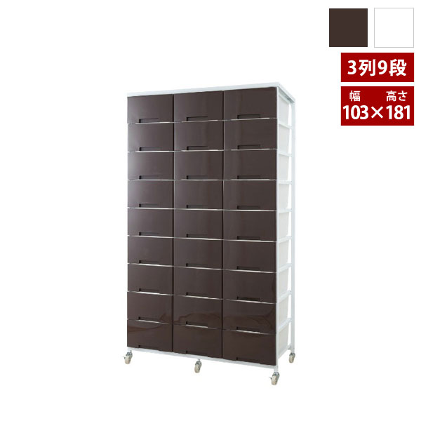 大量収納プラスチックチェスト 多段収納 プラスチックケース 3列×9段 キャスター付き 幅103cm×奥行48cm×高さ181cm NJ-0385/NJ-0397【