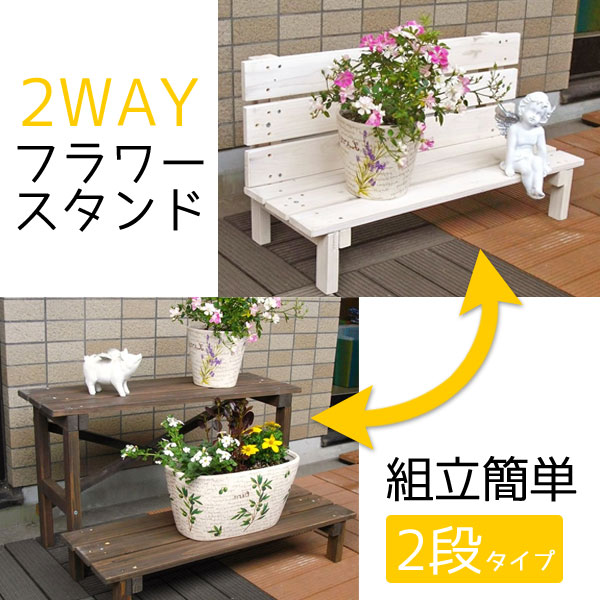 フラワースタンド 2段 幅80cm 木製 2WAY ベンチ風 天然木