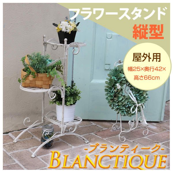 アンティーク調 ホワイト フラワースタンド 縦型 屋外用 SPL-6635 ブランティーク