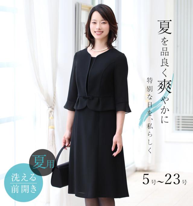 ブラックフォーマル 夏用 レディース 喪服 礼服 洗える ロング丈 大きいサイズ ワンピース 撥水 UV 前開き 黒 ブラック フォーマル スーツ 夏 葬式 お通夜 冠婚葬祭 40代 50代 NS-1401V3 送料無料