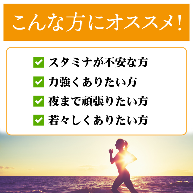 | 古くから健康維持に役立てられてきた「マカ」と「ニンニク」を一粒に詰めました。 マカはアミノ酸の一種であるアルギニンをはじめ、各種ビタミン、ミネラルなど豊富な栄養素を含んでいます。 近年、活力素材としてだけでなく、健康、美容サポート成分としても注目されています。 さらに、アリシンやビタミンB1が豊富な健康食材、にんにくをプラスしました。 家事や仕事、遊びも頑張りたい、アクティブな毎日を応援します。 ▼こんな方におすすめ ・スタミナが気になる方 ・力強くありたい方 ・夜まで頑張りたい方 ・若々しくありたい方 | |