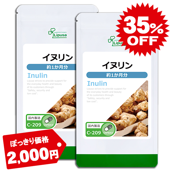 ぽっきりセール イヌリン 約1か月分×2袋 C-209-2 (90カプセル×2袋) 送料無料 ダイエット 食物繊維 オリゴ糖菊芋 サプリ リプサ Lipusa 公式 agesugi_sbe