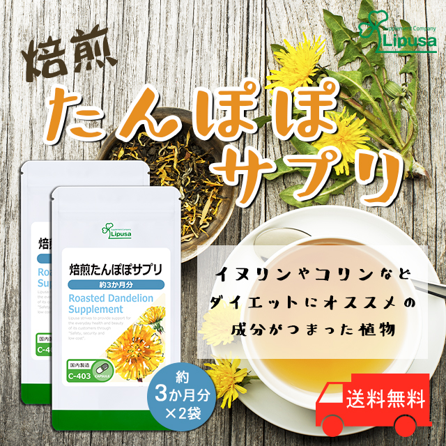 焙煎たんぽぽサプリ 約3か月分×2袋 C-403-2 (90カプセル×2袋) 送料無料 ダイエット イヌリン サプリ リプサ Lipusa 公式 agesugi_sbe