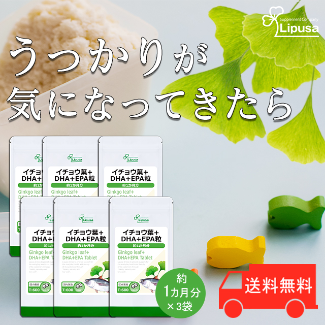 イチョウ葉+DHA+EPA粒 約1か月分×6袋 T-600-6 (180粒×6袋) 送料無料 健康 うっかり サプリ リプサ Lipusa 公式 agesugi_sbe